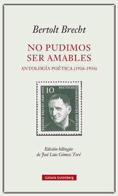 La poesía ocupa un lugar central en la obra de Bertolt Brecht (Augsburgo, 1898-Berlín Este, 1956) y sin ella no cabe entender el alcance ni la grandeza de su proyecto creativo. Brecht escribió poemas desde su juventud hasta sus últimos días y ellos fueron la herramienta con la que interpeló al mundo y reaccionó a las circunstancias de su tiempo. Figura clave en la literatura alemana del siglo xx, fue reconocido como un poeta esencial incluso por quienes se sintieron muy lejos de sus actitudes vitales y políticas, como Elias Canetti o Hannah Arendt. Su escritura, que bebe tanto de fuentes cultas como populares, anuncia no pocas direcciones de la lírica contemporánea: desde luego, la poesía social, pero también el realismo sucio, la lírica de tono coloquial o la llamada 'antipoesía'. Editada y traducida con maestría por el poeta José Luis Gómez Toré, esta antología bilingüe propone un recorrido no solo por los textos recogidos en libro por el autor, sino también por el riquísimo corpus de poemas sueltos, que incluye algunas de sus piezas más célebres. Tampoco faltan las letras de canciones para obras teatrales, musicadas por Kurt Weill o Hanns Eisler.
