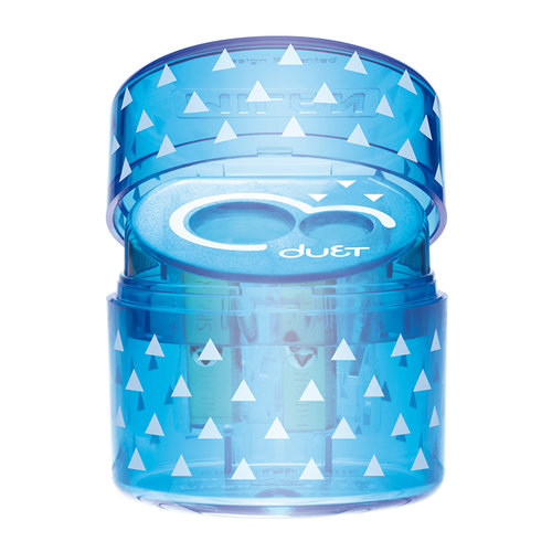 Sacapuntas doble (uno estándar y otro MAXI) con depósito. Diseño DUET serie Look. El sacapuntas tiene una cuchilla de acero al carbono afilada y resistente, ideal para todo tipo de lápices. Artículo con cuchilla de seguridad: evita que se pueda separar la hoja del cuerpo del sacapuntas, siendo óptimo para uso escolar. Diseño original creado por el propio departamento de I+D de MILAN. Colores surtidos disponibles: amarillo, azul, rosa y verde.
