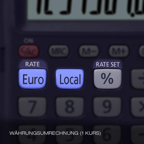 Pantalla LCD extra grande, solapa protectora (giratoria 360°), unción de conversión a Euro, memoria independiente, cálculo de porcentaje Alimentación: pilas (1 pila LR54 incluida) Dimensiones cerrada: 10.4 x 6.25 x 1 cm Dimensiones abierta: 10.4 x 12.7 x 7.5 cm