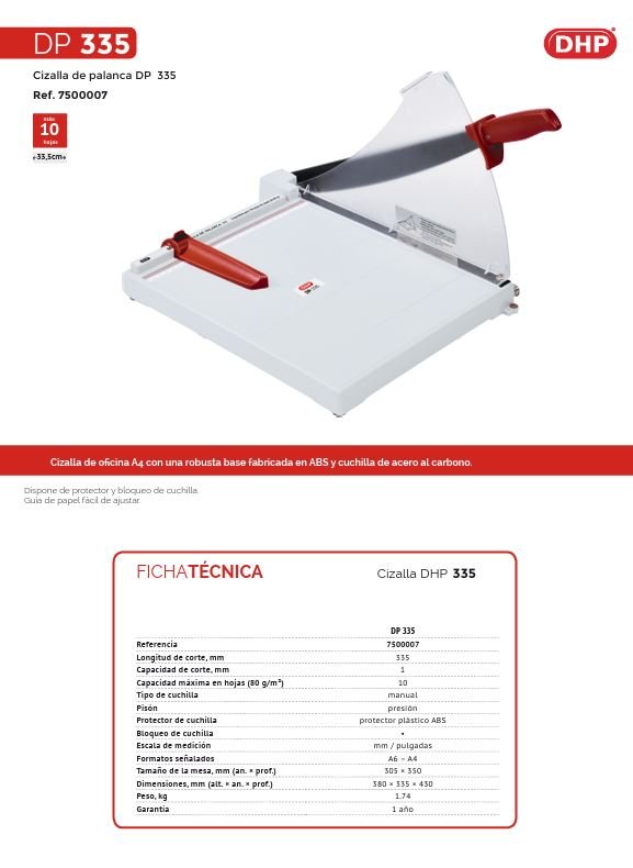 - CAPACIDAD DE CORTE: 10 HOJAS