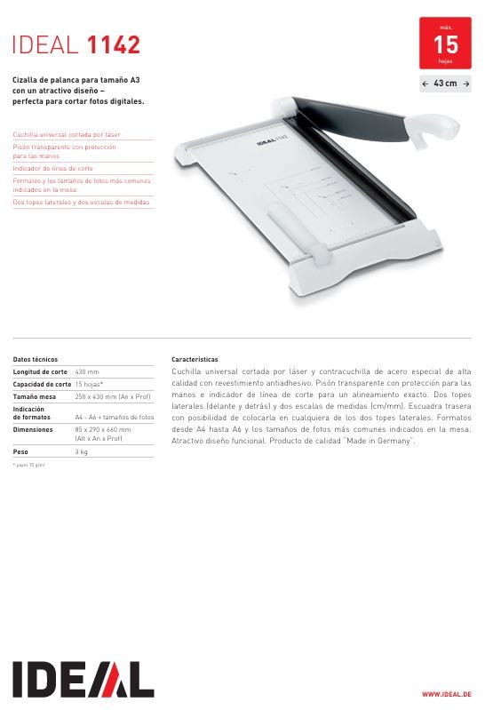 - CAPACIDAD DE CORTE: 15 HOJAS