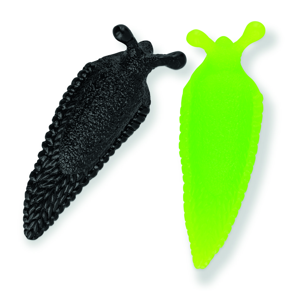 Caracoles pegajosos ZOO, set de 2. íPara bromas divertidas, jugar y divertirse Dos babosas escurridizas en formato XXL y en dos colores diferentes (verde neón, negro). Empaquetadas en una práctica caja deslizante de cartón de alta calidad. Tamaño: aprox. 12,0 x 4,0 x 3,3 cm.