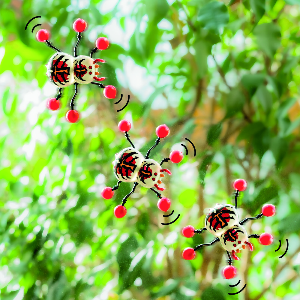 Araña trepadora de ventanas ZOO, 3 unidades surtidas. Coloca la araña en una ventana o superficie lisa y observa cómo baja. íUn regalo genial para niños y adultos Nota: Fácil de limpiar con agua tibia y jabón. Tamaño de la araña: aprox. 8,3 x 6,0 x 2,5 cm. Disponible en 3 colores: amarillo, gris y verde.