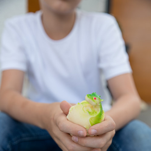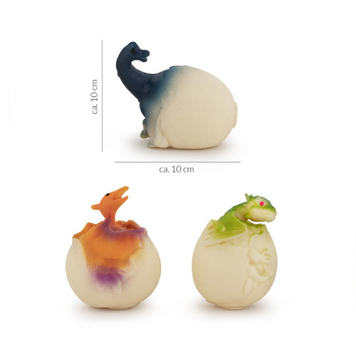 Fanáticos de los dinosaurios, ícuidado Un huevo de dinosaurio para apretar con un efecto de brillo en la oscuridad para coleccionar, apretar, arrugar y divertirse. Disponible en 3 versiones diferentes: Pteranodon naranja, Estegosaurio verde, Brachiosaurus azul Material de relleno: polvo de EVA Tamaño: aprox. 8.0 x 6.0 cm