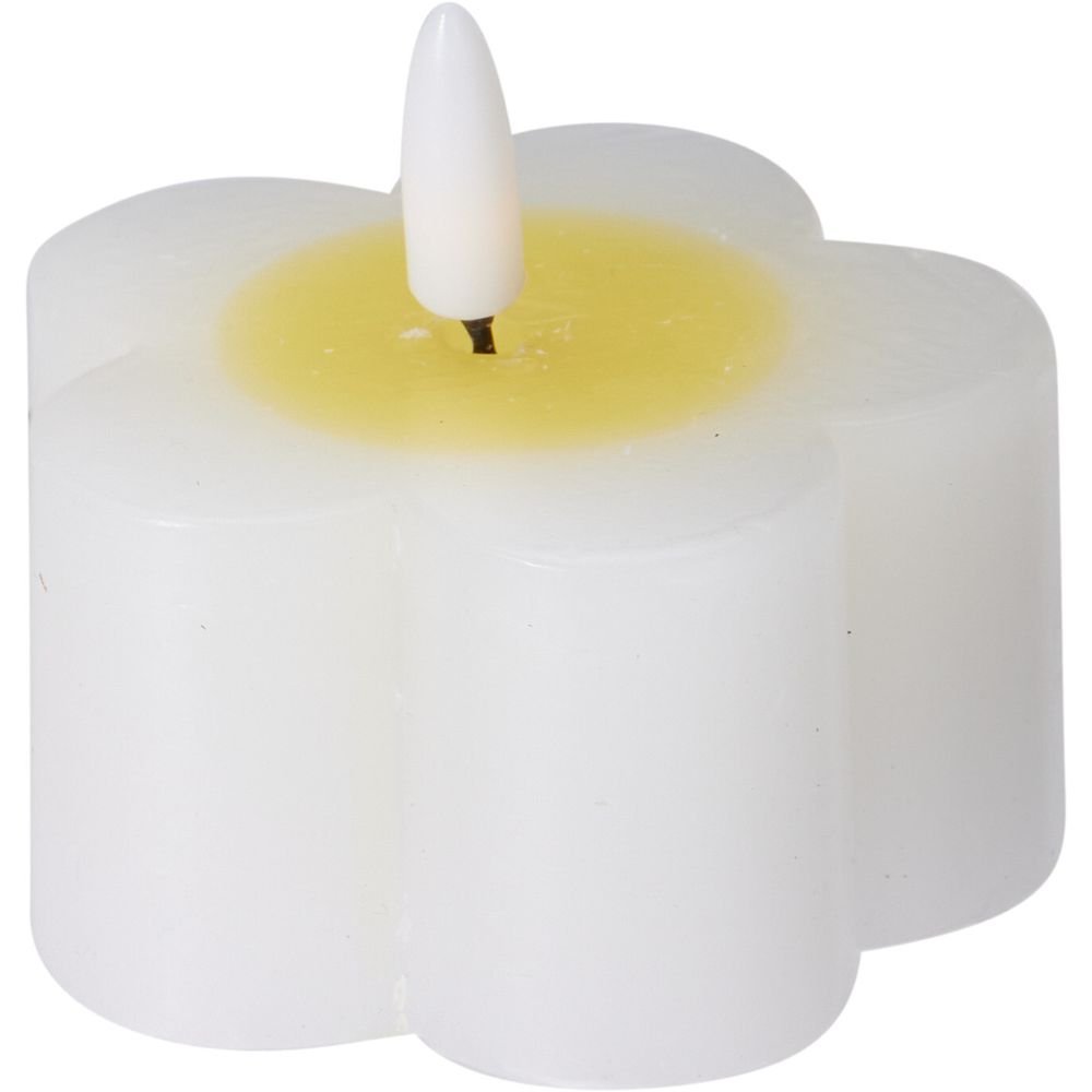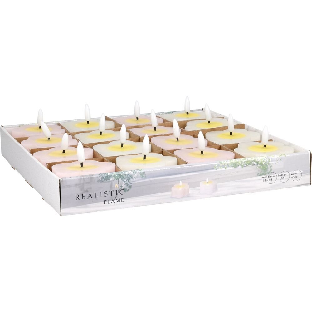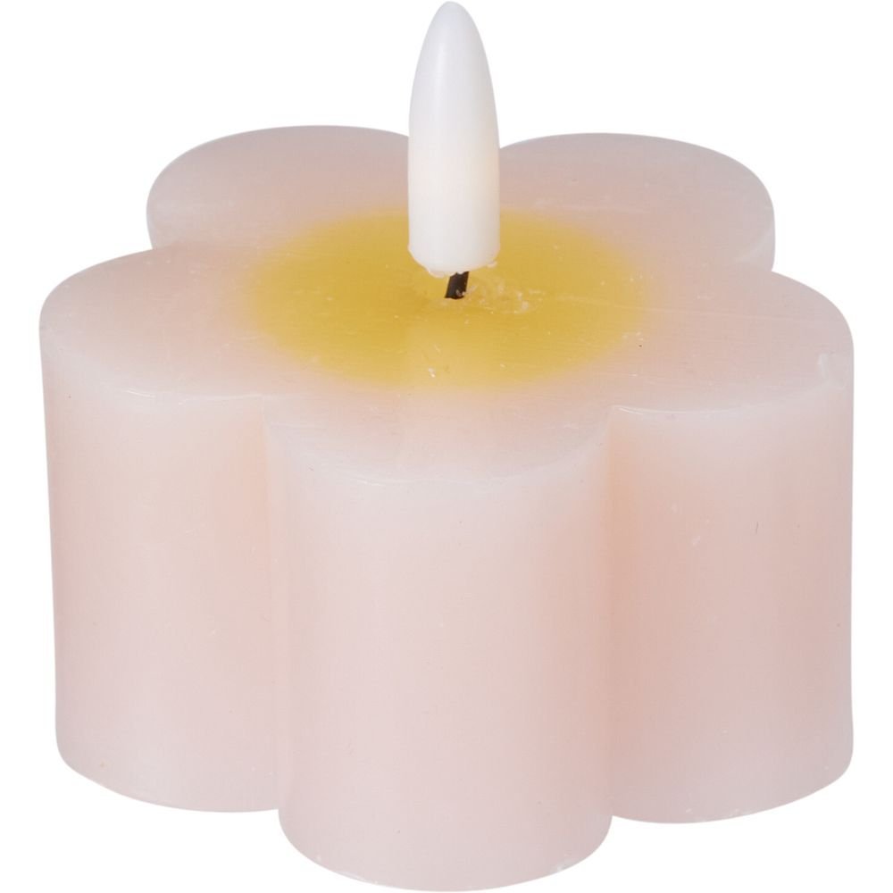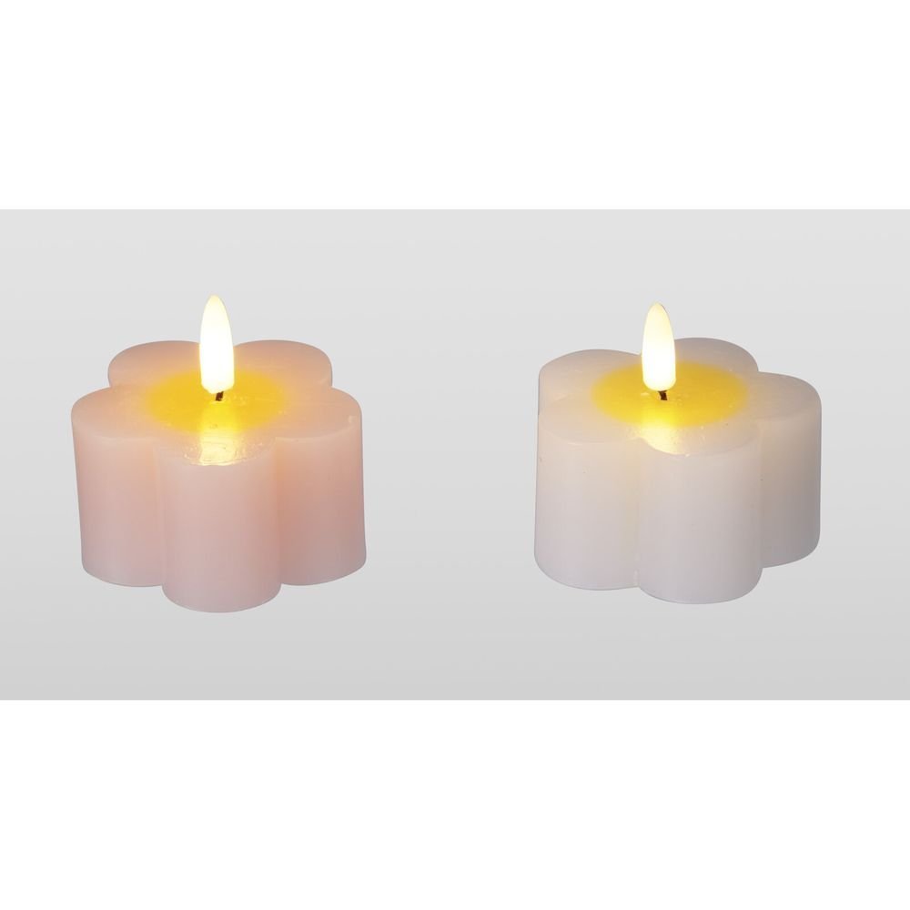 4ED FORMA DE FLOR DE VELA, BLANCO CÁLIDO, TAMAÑO 7X7X4CM, CERA, PESO DE LA CERA: 90 GRAMOS. 1 LLAMA LED CON EFECTO LLAMEANTE. B/O, 1X PILA CR2032 INCLUIDA, CON TEMPORIZADOR 6/18, 2 COLORES SURTIDOS: ROSA Y BLANCO, 16PCS EN DISPLAY., ASS.:2 Colores/ 70X70X40MM, Pegatina de código de barras (SB22): B/O 1xCR2032 3V (Litio) incluido para Artículo, RAEE