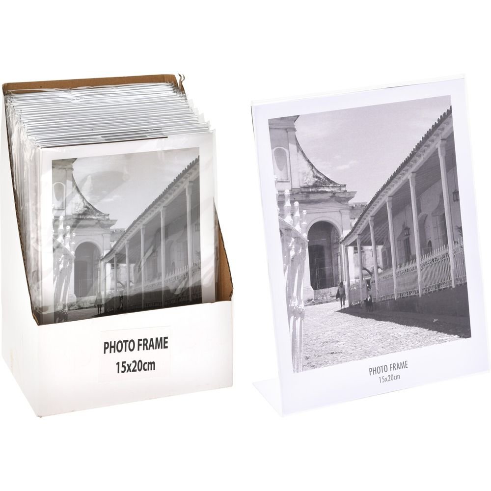 Portafotos 15x20cm ps. Color transparente. Cada pieza embalada en bolsa de pp. Cada pieza con etiqueta de código de barras en la parte trasera. 24pcs en caja pdq. El inserto debe decidir por koopman/ 150x55x205mm, bolsa de polietileno con etiqueta de inserción (pbi) / cft 0,86,(248.301/40ft hq)
