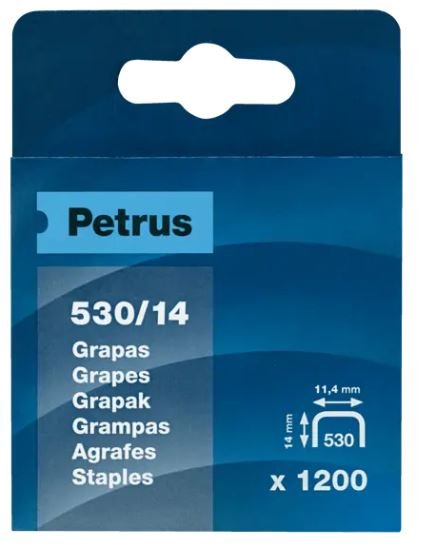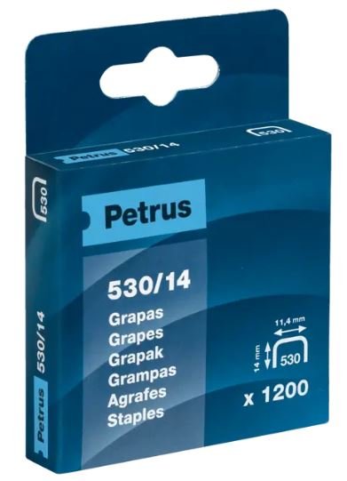 Fabricadas con alambre cobreado de gran calidad. Cada caja contiene 1.200 grapas De calidad superior, recomendadas para usar con las clavadoras Petrus. Patilla de 14 mm de largo