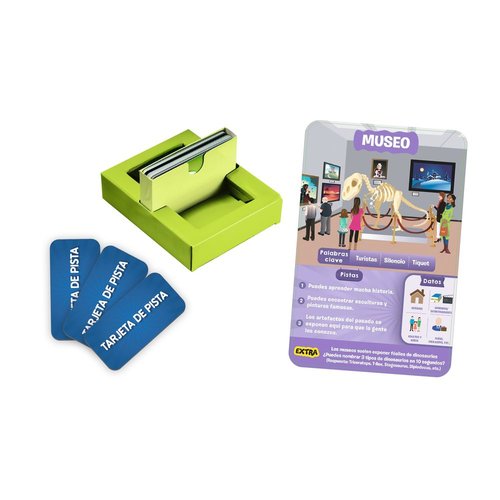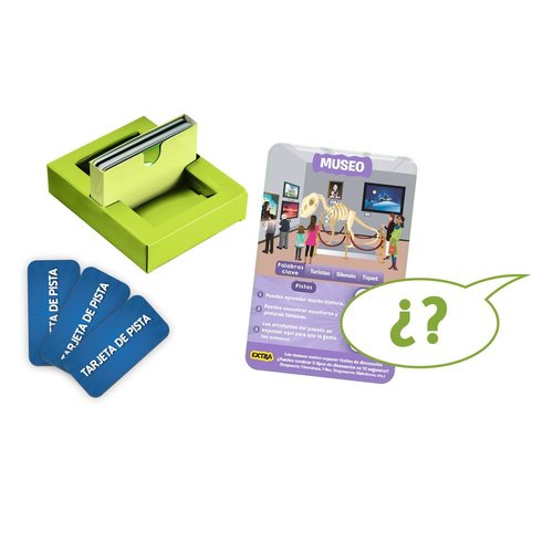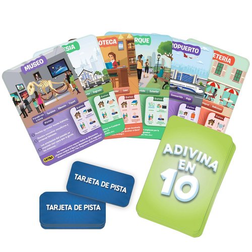 Haz hasta 10 preguntas para adivinar el lugar de la ciudad que se esconde tras la Tarjeta de Juego. ¿Es un lugar al aire libre?, ¿La gente va allí a comprar? íPiensa bien, haz preguntas inteligentes, utiliza tus Tarjetas de Pistas y sé el primer jugador en ganar 7 tarjetas
