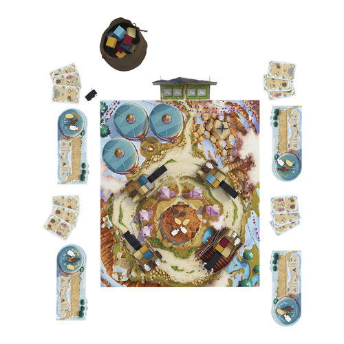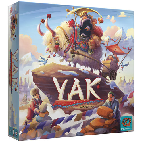 El anciano mayor de tu aldea te ha encomendado la tarea de construir una torre de piedra para ayudar a los comerciantes ambulantes y a sus yaks a encontrar tu aldea en el Himalaya. Cada jugador construye su torre de piedra estratégicamente intercambiando alimentos por Piedras concretas. Sin embargo, la densa niebla de esta región podría desorientar a los yaks y arruinar tus planes de construcción. íTrabaja duro parar sobreponerte a la niebla y a tus rivales, y construye tu camino hasta la victoria CONTENIDO 1 Tablero de juego, 1 Bolsa, 64 Piedras, 8 Piedras de cristal, 1 Montaña, 1 indicador de Niebla, 5 Fichas de Niebla, 45 Fichas de Alimento, 4 Yaks, 4 Remolques, 8 Carteles, 4 Tableros de jugador, 12 cartas de Acción, 8 cartas de Bonificación, 1 marcador de Puntuación, 1 Estupa, 1 Cría de Yak, 1 Reglamento.????