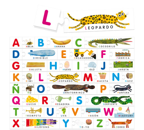 Los niños tocan las letras esmeriladas, asociadas a grafemas con la palabra y, gracias a las fichas especiales autocorrectivas, aprenden el alfabeto y pueden distinguir palabras mas largas y mas cortas.