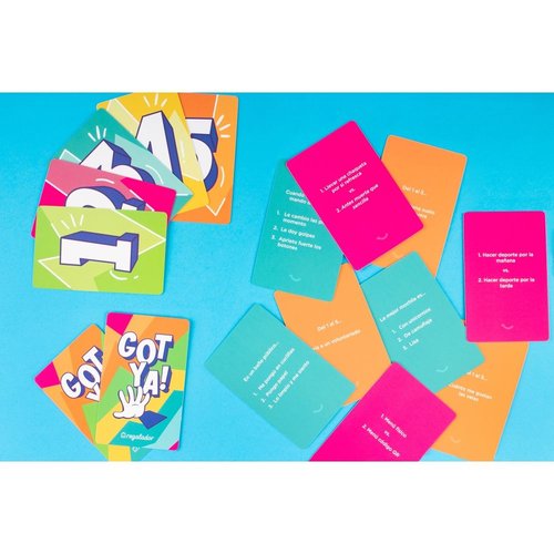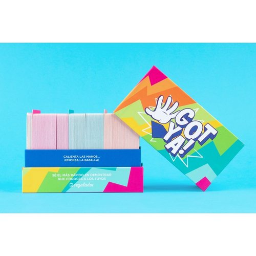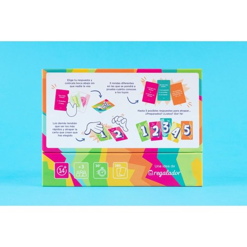 Sé el más rápido en demostrar que conoces a los tuyos. Elige tu respuesta y colócala boca abajo sin que nadie la vea. Los demás tendrán que ser los más rápidos y atrapar la carta que crean que has elegido. 3 rondas diferentes en las que se pondrá a prueba cuánto conoces a los tuyos... Hasta 5 posibles respuestas para atrapar. ¿Preparados? ¿Listos? GotYa Número jugadores: 3 o más. Edad: +14. Tiempo juego: 30-40 minutos.