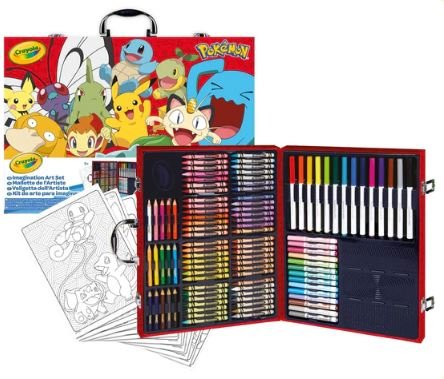 Toda la fantasía de los mágicos Pokémon en un maletín súper coloreado y decorado con 115 piezas. La mejor selección de los productos de Crayola como rotuladores lavables, ceras y escenas con el gracioso Pikachu y sus amigos. Contenido: 1 maletín con asa, 56 ceras, 15 mini lápices, 28 rotuladores lavables, 15 pàginas para colorear