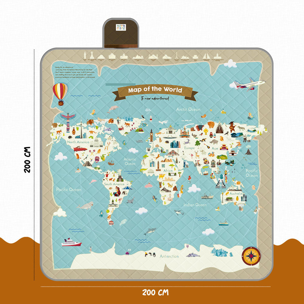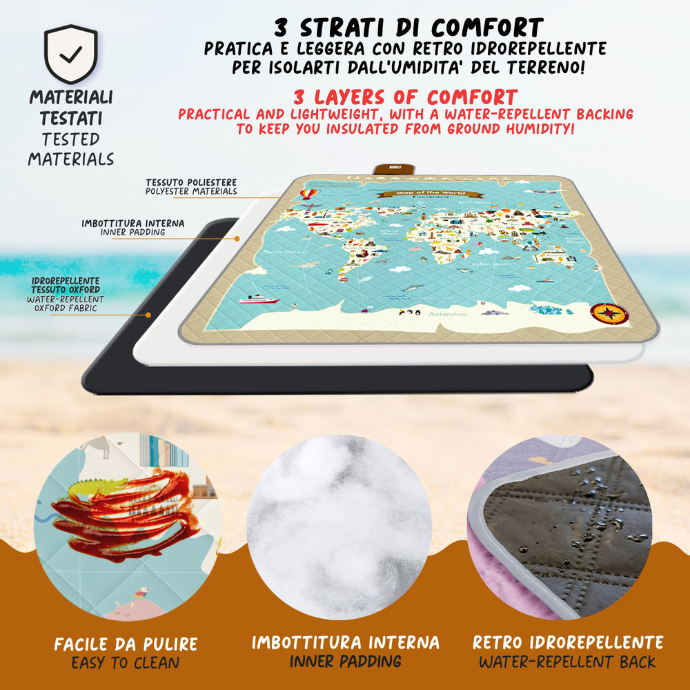 Manta picnic 200x200 cm - Dorso repelente al agura - Acolchado interior - Mundo Azul