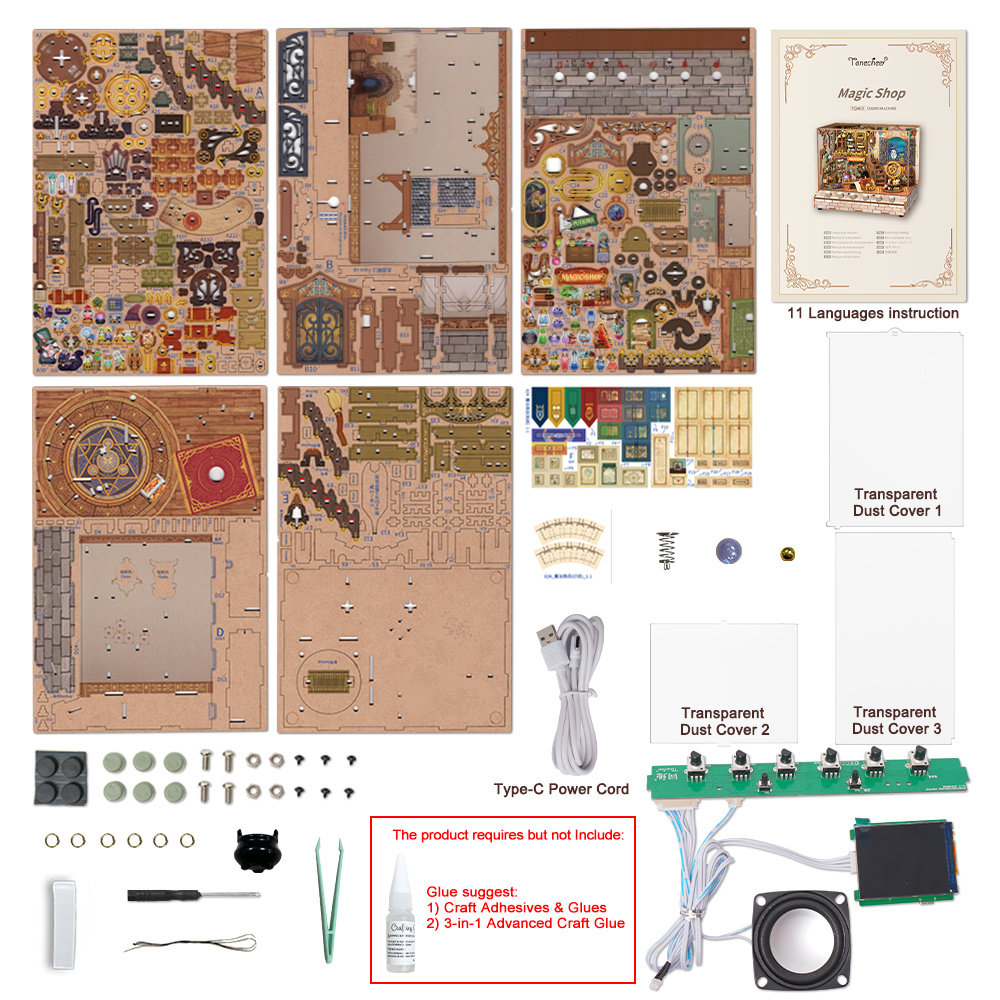 En una noche misteriosa, un búho llega a tu ventana con la carta de admisión de la academia de magia en el pico. Ven a la bien surtida tienda mágica, donde todo tipo de pociones misteriosas, varitas y criaturas encantadas te esperan en los estantes, ílistas para que elijas entre ellas Información del producto: ? Número de piezas: 311 ? Material: Contrachapado, papel, plástico ? Tiempo de preparación: 3?5 horas ? Nivel de dificultad: ????? Características: ? Materiales de primera calidad: Fabricado con madera contrachapada ecológica y detalles en miniatura finamente elaborados ? Biblioteca Encantada: Un misterioso mundo en miniatura lleno de libros, escaleras, pergaminos antiguos y magia ? Iluminación LED: Crea una atmósfera cálida y mística en la biblioteca en miniatura. Nota: ? Pilas y adhesivo: 3 pilas AA y adhesivo no incluidos. ? Requisitos adicionales: 2 pilas AAA y adhesivo (no incluidos). ? Edad recomendada: 10 años o más, debido a las piezas pequeñas.
