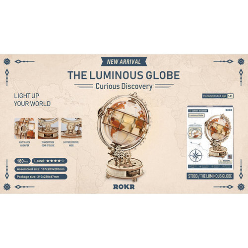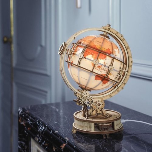 El Luminous Globe, no es sólo el clásico globo terraqueo, también no servirá de lámpara de noche con una cálidad luz. Este creativo puzzle de madera en 3D diseñado para adultos y adolescentes que resultará una decoración inspiradora que te llevará a viajar por todo el mundo desde casa. Un kit DIY con un trabajado diseño, perfecto para desarrollar tus habilidades. Utiliza un corte de precisión por láser sobre madera contrachapada de alta calidad.