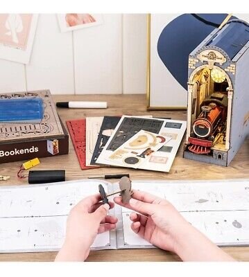 Descubre la colección de sujetalibros de Robotime. Móntalos tu mismo uniendo las piezas de madera de alta calidad precortadas y prepintadas. Ventanas a un mundo mágico en tu propia estantería.