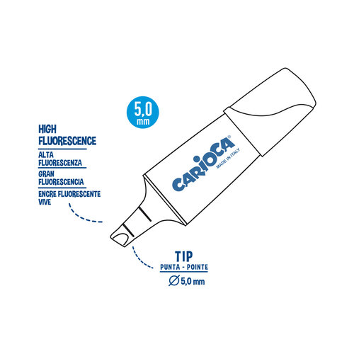 Subrayadores MINILIGHT 4 Uds Colores surtidos, brillantes y lavables Tinta a base de agua Punta biselada de 5 mm Made in Italy
