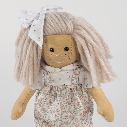 Marta es una muñeca de trapo con vestidos a conjunto con los accesorios existentes de la colección Violeta. La muñeca mide 38 cm