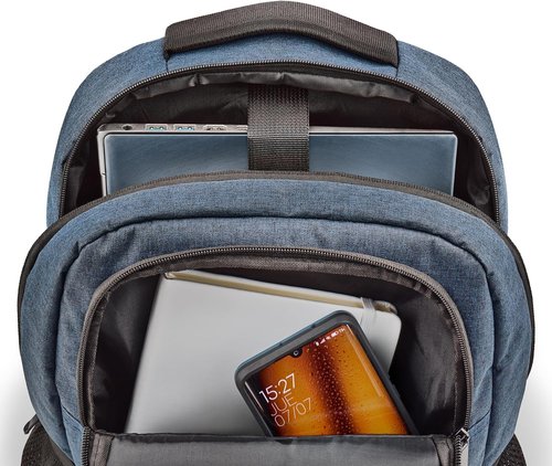 Añadir a mi cestaMochila protectora para portátil de hasta 15,6 quot; en color azul oscuro jaspeado (450x350mm).Gran capacidad para el almacenamiento del día a día.Suave acolchado interno para una máxima protección.Incluye un bolsillo externo en el que puede guardar y proteger sus accesorios y tener un acceso rápido.Se fija al equipaje con ruedas gracias a la correa de sujeción que incorpora.Fabricada con tejido de alta calidad, resistente al agua, antiarañazos, a prueba de golpes y ligera.Práctica y universal, adecuada para diferentes objetivos ypropósitos.Tiene dos bolsillos laterales de malla para guardar botellas de agua y paraguas plegables, que garantizan el orden y facilitan la búsqueda de tus objetos.