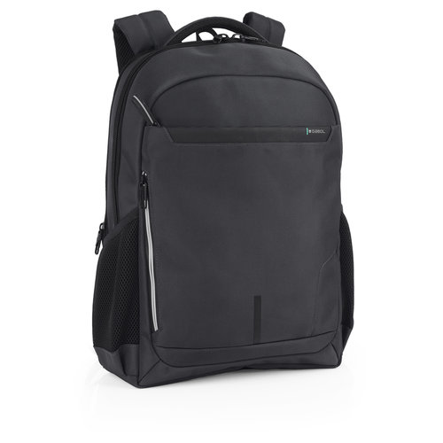 Mochila para portátil de 15,6 quot; de poliéster y piel sintética, gris, con clasificador, organizador , con reflectante y con acople a maleta. Incluye forro de alta clidad, acolchado y con organizador para portátil. Fabricado con material libre de plásticos PVC. Medidas: 34x46x13 cm. Volumen: 17 L