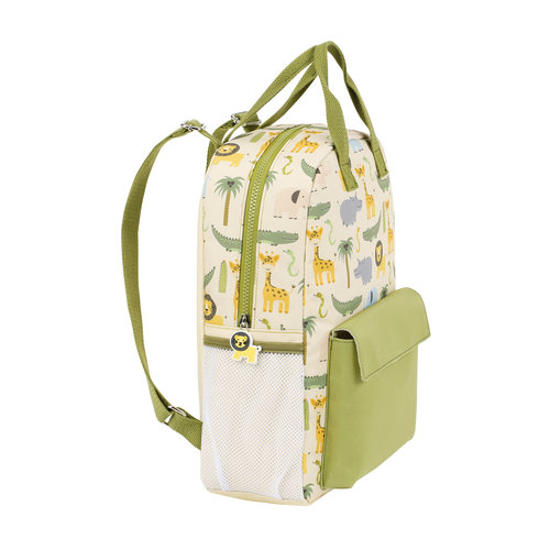 MOCHILA SAFARI - BABY WILD Dimensiones: 25X35X11CM Material de poliéster 300D Espalda acolchada de poliéster Asas superiores Bolsillo frontal con cierre de velcro Colores: Beige