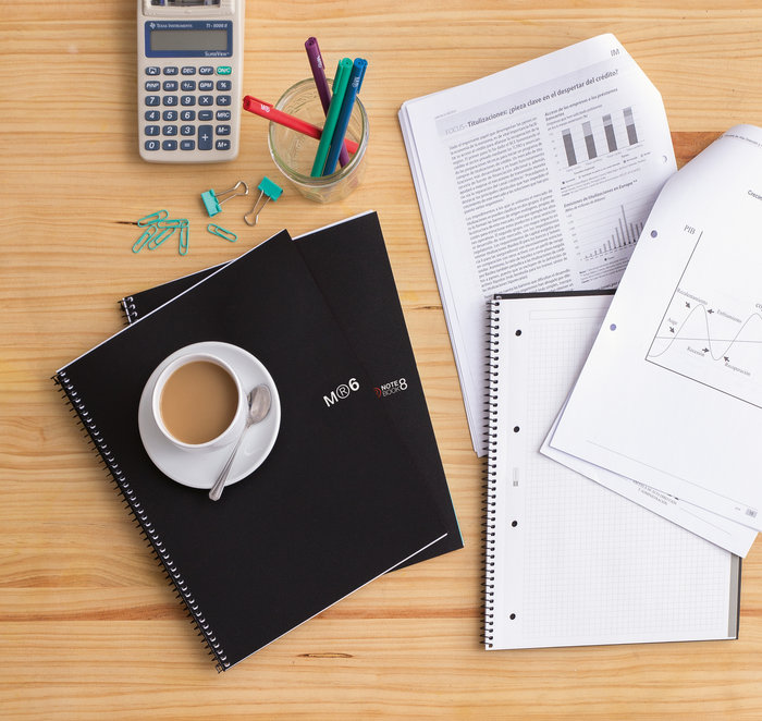Cubiertas: Polipropileno opaco. Incluye adhesivo explicativo removible. Papel: Extra opaco 70 g/mý. Hojas: 200 (25 por color), microperforadas. Rayado: CuadrIcula 5 mm. Taladros: A4:4. Certificación: FSC Mix Credit. Presentación: Paquetes de 3 unidades.