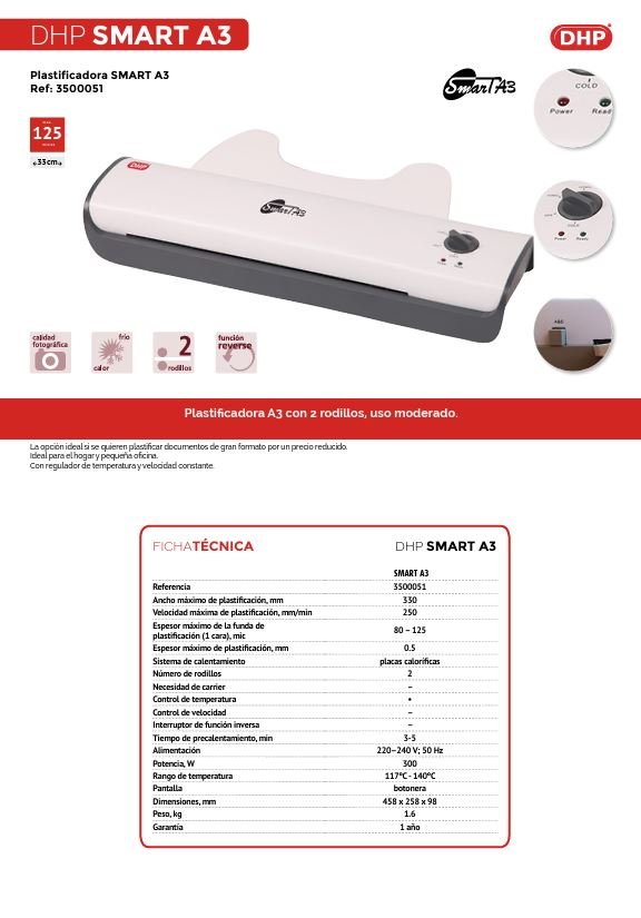 Añadir a mi cestaPlastificadora A3 con 2 rodillos, uso moderado. La opción ideal si se quieren plastificar documentos de gran formato por un precio reducido.