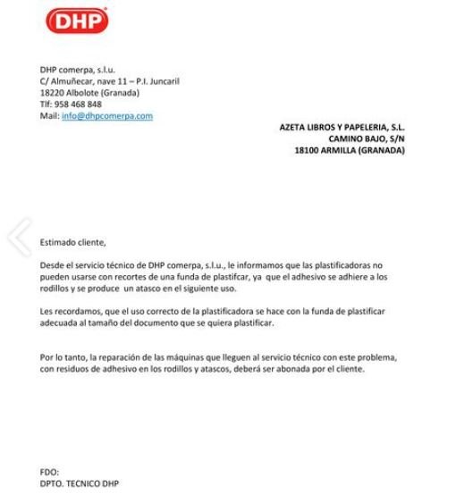 - Materia: PLASTIFICADORAS