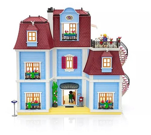 Con terraza en la azotea, escaleras de caracol, tiembre que funciona (necesita pilas 2 x AAA no incluidas) y buzón. Se puede combinar con las seis habitaciones para amueblar 70206 - 70211. Dimensiones: 68 x 36 x 62 (LxPxA)