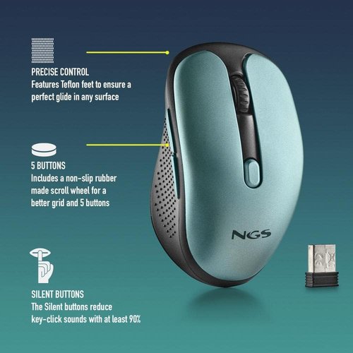 Ratón inalámbrico recargable con teclas silenciosas.Cuenta con sensor óptico y RF de 2,4 Ghz.Dispone de un sensor de alto rendimiento, completamente ajustable. DPIs: 800/1200/1600.Equipado con una batería de litio recargable de 600 mhA, fácil de cargar con el cable Micro USB (incluido).Incluye una rueda de desplazamiento de goma antideslizante con un diseño óptimo de deslizamiento y 5 botones.Botones silenciosos: sus suaves y silenciosos clics te ayudarán a desprenderte de las preocupaciones de molestar a las personas de tu alrededor, ya que reduce el sonido hasta un 90 .Diseñado especialmente para usuarios diestros.Incorpora base de teflón para asegurar un perfecto deslizamiento en cualquier superficie.Botón de encendido/apagado para ahorro de energía.Tamaño compacto (62 x 38 x 105 mm) ideal para utilizar con tu portátil.Hasta 50 horas de duración de la batería con una sola carga.Alcance inalámbrico de 8-10 m. quot;Plug and Play quot;.