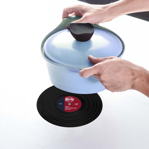 Con este curioso salvamanteles dejaras asombrado a tus visitas ya que no se esprarán un disco de vinilo evitando que tu mantel sufra daños.