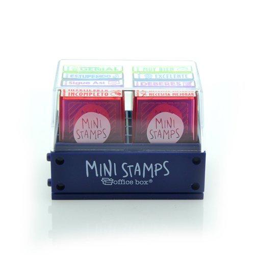 SET DE 8 MINI STAMPS EN CONTENEDOR. 8 TITULOS DIDACTICOS EN 4 COLORES SURTIDOS.