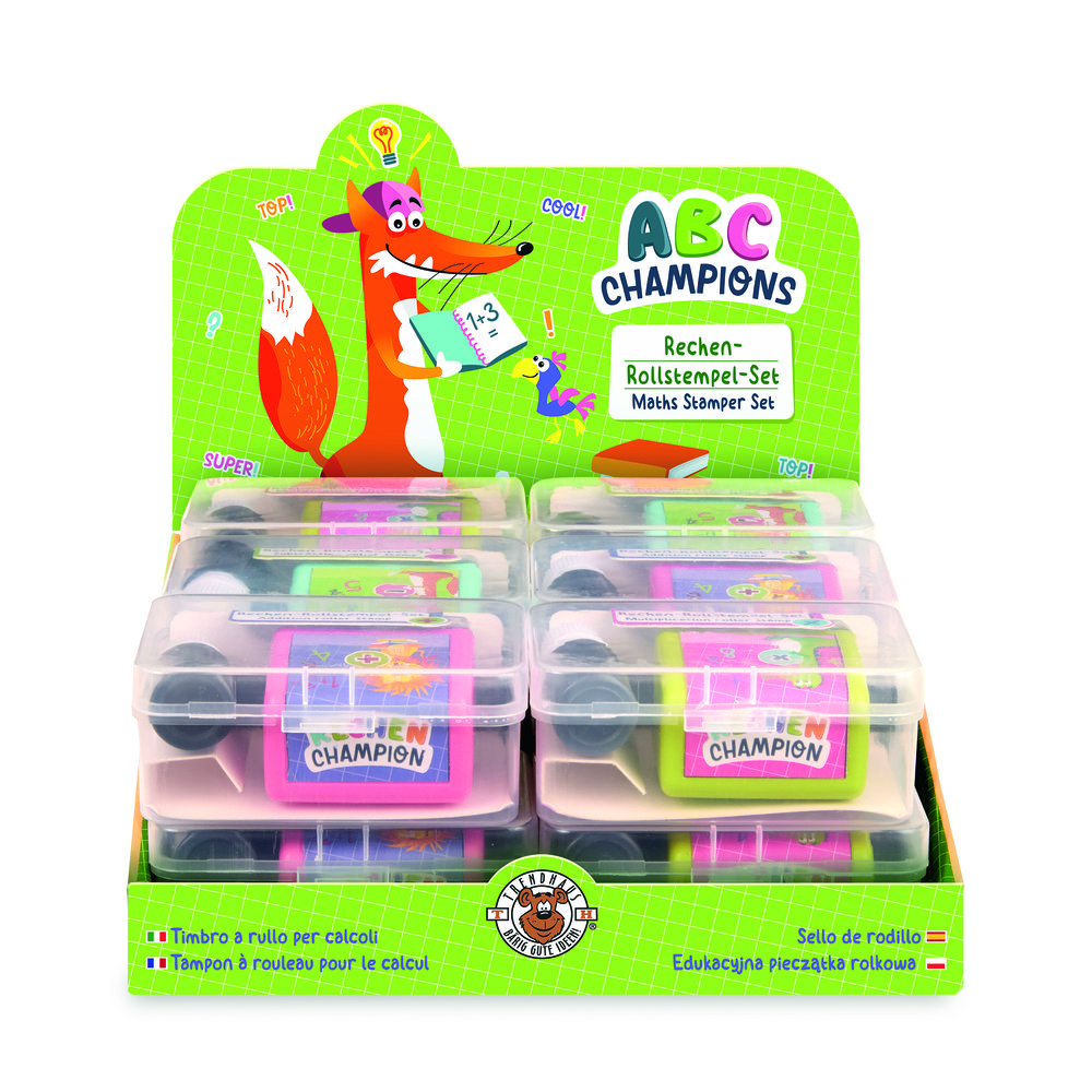 íPracticar problemas matemáticos es muy divertido con el set de sellos rodantes de matemáticas Selecciona una configuración con las ruedas, ruédalo y se crearán nuevas tareas directamente en el papel. Fomenta el cálculo mental de forma lúdica y aporta variedad al aprendizaje. Incluye botella de tinta para recargas. Tamaño del sello: aprox. 5.0?×?6.5?×?4.5?cm. Disponible en 3 versiones, cada una con 100 problemas: suma, resta y multiplicación.