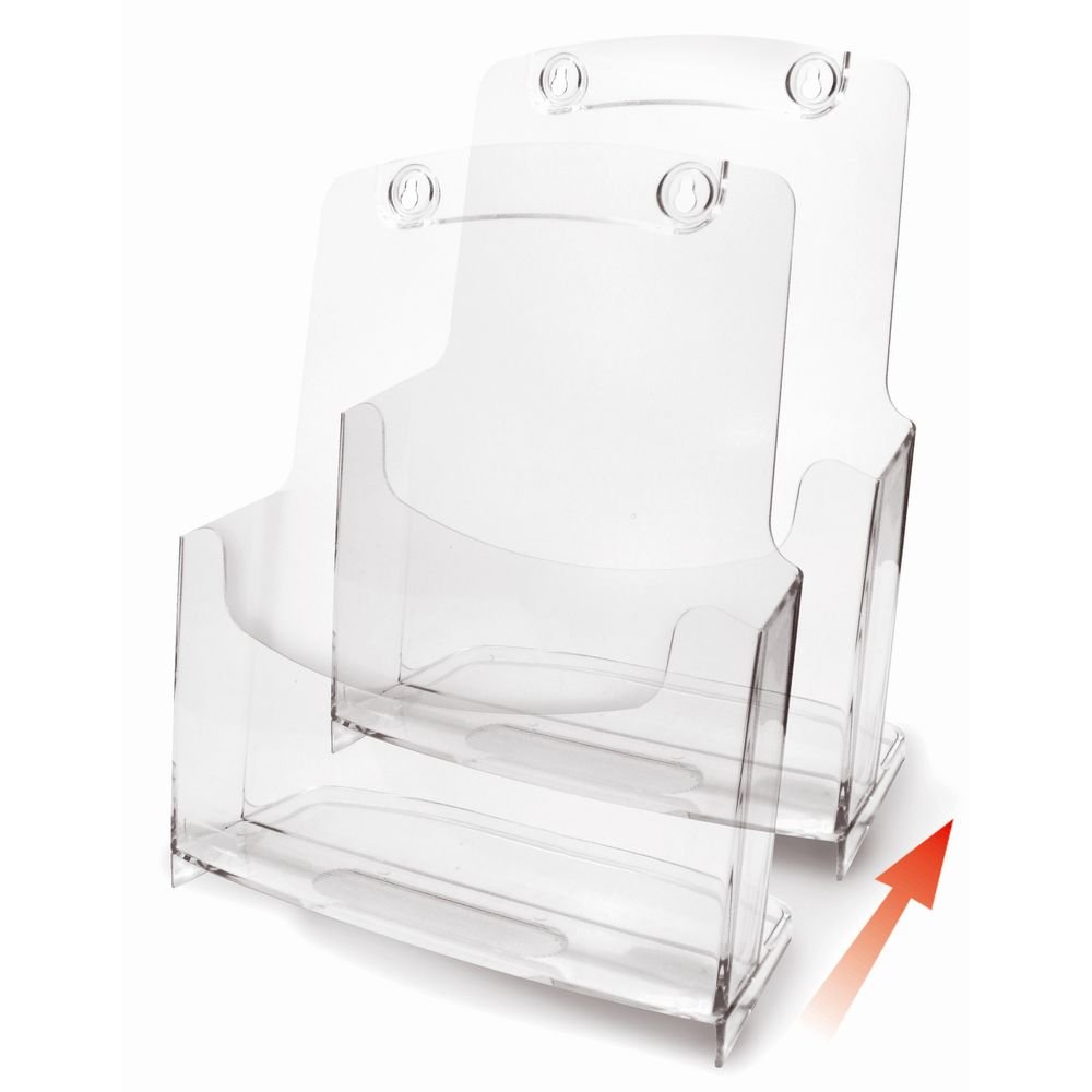 Muebles modulares de pared o de sobremesa, con compartimentos individuales o múltiples. Los portafolletos están diseñados para responder a requisitos de visualización modernos. Atención particular. Se ha prestado atención al diseño y la practicidad. Se unen para ahorrar espacio en la mesa y mejorar la organización de la exposición. Hecho en material plástico transparente para permitir una perfecta visualización del contenido. El respaldo y la base ligeramente inclinados con integrado. Las ranuras garantizan una excelente estabilidad del material. en exhibicion.