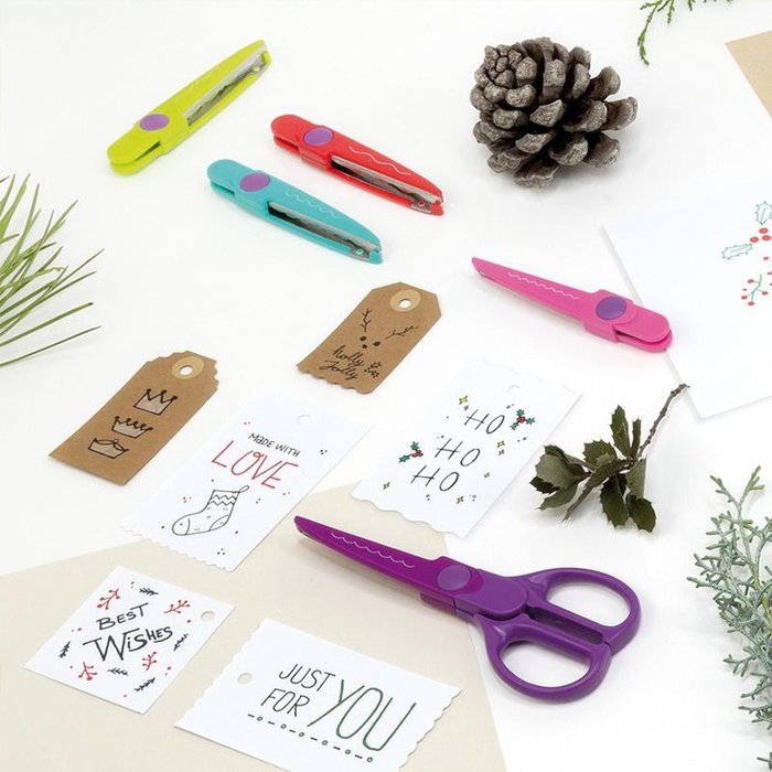 Añadir a mi cesta1 mango de plástico de color lila con 8 hojas intercambiables de distintos cortes. Cada hoja está recubierta de plástico y cuenta con un dibujo indicando el tipo de corte. Recomendada para manualidades y scrapbooking.